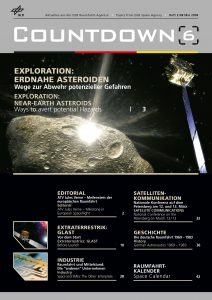 Einschläge von Asteroiden und Kometen auf der Erde sind natürliche Vorgänge. Die Auswirkungen solcher “Impakte” reichen vom Eindringen kleinster Staubteilchen in die Erdatmosphäre bis zu selteneren Einschlägen größerer Körper, bei denen sich Krater auf der Erdoberfläche bilden oder im Meer Tsunamis entstehen. Die Zahl potenziell gefährlicher Objekte – mehr als 150 Meter und weniger als 7,5 Millionen Kilometer von uns entfernt – beträgt aktuell 929. Es lohnt sich also, über Möglichkeiten der Gefahrenabwehr nachzudenken. Die Zerstörung oder Umlenkung des Objektes durch chemische Raketenantriebe, Impaktoren, Nuklearsprengsätze oder Sonnenspiegel sind Ansätze, die in der COUNTDOWN-Ausgabe 6 vorgestellt werden. Weitere Themen in diesem Heft: der deutsche Beitrag zum US-Gammmastrahlen-Observatorium GLAST, kleine und mittelständische Unternehmen in der deutschen Raumfahrtbranche und der fünfte Teil der Geschichte der deutschen Raumfahrt (1969-1983).